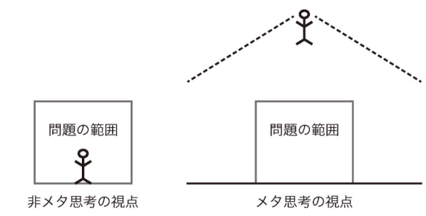 メタ思考では、上から全体を見渡すように客観的に物事を見ることで、それまで気付けなかった問題点に気付き、解決方法を見いだすことも可能です。問題の一部に偏った狭い見方ではなく、広い視野を持って考えられるようになるため、ビジネスにも必要な思考法として注目されています。
