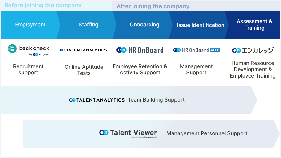 Total Talent Solutions This page introduces the four services of en world and the service tools for HR professionals by en Inc. that configure the solution.